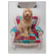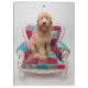 Um Goldendoodle feliz que senta-se satisfeita em uma cadeira colorida, modelada. Este filhote de cachorro desgrenhado bonito parece ser maior do que a cadeira mas nunca demasiado grande para realizar em seus braços. Com sua língua que cola para fora, enfrentando a câmera nesta foto, faria o companheiro perfeito. Descubra uns filhotes de cachorro mais bonitos dos lotes aqui em Zazzle com imagens de Getty.