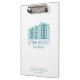 Organize seus documentos em estilo com esta elegante área de transferência com um logotipo moderno de paisagem urbana em tons azuis. Perfeito para profissionais do setor imobiliário, corretores e consultores de propriedade, esta área de transferência oferece uma busca elegante e profissional por reuniões de clientes, casas abertas e apresentações comerciais. Criada para durabilidade e estilo, é uma ferramenta essencial para manter uma imagem de marca polida na indústria imobiliária.
