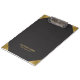 Imagem de um impressão de couro preto, com sotaque dourado nos cantos.