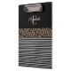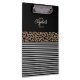 Uma elegante impressão de um animal leopardo preto e uma prancheta de monograma listrada a preto e branco. Bonito para o escritório e tão divertido para voltar à escola! Adicione seu nome e inicial. Projetado para você pelo Blackberry Boulevard.