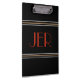 As iniciais monogramas profissionais em vermelho são adicionadas à prancheta preta personalizada para na moda. Sua escolha pessoal personalizada de texto é adicionada à nossa faixa preta na moda com tipografia vermelha e listras brancas e douradas. A cor do fundo e da fonte é facilmente alterada com a seção da ferramenta design do Zazzle. Certifique-se de verificar nossas outras opções de cor e designs personalizáveis em muitos outros itens na minha loja! Envie-me um e-mail para beachpausedesigns@gmail.com se tiver perguntas sobre este ou sobre qualquer um de nossos designs!