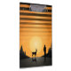 "Midnight Rendezvous: Man and Stag under the Ouro Moon" apresenta um design minimalista, mas elegante, que representa uma cena noturna pacífica. Um homem e um palco, silenciados contra um céu estrelado, olham para uma lua de cheio radiante que banha a cena em uma luz de ouro. Esta trabalho de arte, com seu contorno preto e ouro, cria um ambiente sereno e majestoso, convidando a contemplação da vasta beleza do universo. A simplicidade do design, focada nos contornos das figuras e elementos celestes, dá sofisticação e mistério à trabalho de arte.