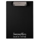 Acelere o seu jogo de penteados com esta área de transferência Jazzy Hairstylist! Este na moda e a área de transferência personalizada apresentam o seu nome e tipo de negócio bem impresso na frente, mais o design atrás, que chama a atenção, mostra duas cabeças de mulheres da silhueta branca, cada uma exibindo diferentes pincéis e pincéis/pincéis brilhantes. Adicione um toque de elegância à marca profissional enquanto se mantém organizado e em voga, à medida que sua equipe cria penteados incríveis para seus clientes. Prepare-se para virar cabeças no salão com a área de transferência Jazzy Hairstylist!