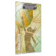 A prancheta de voleibol feminino esportiva, com o sunny Summer laranja, placa gráfica verde e dourada de vôlei composta por jogadoras de vôlei pulando na rede - por katz_d_zynes