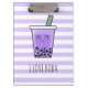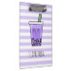 Adoro a prancheta de Boba Kawaii Tea Taro Boba. Projetado para amantes de chá de bolha. Ilustração digital de Kristine Lee. Para obter mais informações, visite www.kristineleedesigns.com
