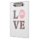 Este design apresenta um conjunto pastel de lábios e AMOR em um padrão listrado preto e branco.