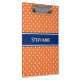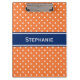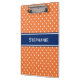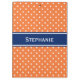 Padrão personalizado de bolinhas laranja e branca com a área de transferência azul-real. Pequenas bolinhas brancas em laranja e no meio há uma banda azul real para colocar seu nome personalizado.