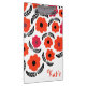 Padrão único, moderno e ocular de cor laranja e flor vermelha com decoração de folha preta em presentes e acessórios personalizados.