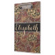Um teste padrão de Paisley com teste padrão da pele do ponto do leopardo com uma bandeira de couro preta cercado pelos cristais de rocha do diamante (falso) esses você pode personalizar e personalizar. Apenas mude a Elizabeth conhecida a todo o nome que você escolher. Modele cores variam em preto, marrom, marrom, vermelho.