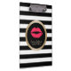 O branco preto moderno dos lábios vermelhos do maquilhador listra a prancheta.