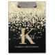Elegante, Glam, Sparkle Bling Girly Shiny faux preto e dourado diamante lenhador confetti personalizado prancheta monograma personalizado. Apresentando um confete de diamantes dourados amarelo falsa sobre fundo preto. modelo de assinatura de nome próprio bonito no script de fonte do tipo swash tail tipografia com letra de letra maiúscula. Fácil de personalizar o seu nome e inicial do monograma. Por favor, note: esta design é um efeito fotográfico impresso sem brilho e joia reais. Presente feminino perfeito para meninas, mãe, irmã, aniversário, negócios, escritório ou qualquer pessoa que ama o estilo glamouroso bonito de na moda.
