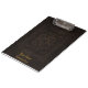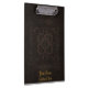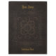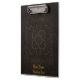 Uma prancheta imprimiu com a imagem de uma capa do livro velha feita do couro utilizado ferramentas marrom com os padrões decorativos, e texto dourado opcional.