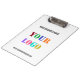 Cores e fontes personalizadas - Área de transferência com seu nome de logotipo Promocional Web site Empresa personalizada Promoção comercial ou Cores personalizáveis pessoais e Texto moderno Clipboards / Presente - Adicionar seu logotipo - Imagem - Foto ou QR Code / Nome - Empresa / Site ou Email ou Telefone - Informações de contato / Endereço / mais - Redimensionar e Mover ou Adicionar Elementos - Imagem / Texto com Ferramenta de personalização. Escolha / adicione seu plano de fundo e cores de texto / fonte / tamanho favoritos! Por favor, veja meus outros projetos/designs. Você também pode transferir esses designs para mais de 1000 produtos Zazzle. Use seu logotipo - imagem que não viola os direitos autorais de ninguém!! Divirta-se - Seja feliz - seja saudável!
