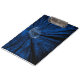 Esta design apresenta uma bela imagem de uma lua de cheio atrás de árvores altas. O céu é azul escuro.