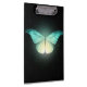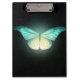 Lindas características gráficas de uma traça de luna teal "brilhante" sobre fundo preto com um padrão moderno adicionado de círculos de interseção que parecem estar iluminados pela mariposa.