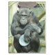 Um chimpanzé fofo que tem um CD, mas infelizmente não tem um toca-discos.