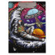 Arte vetorial original de um astronauta com queijo luar e passando uma fatia para uma alienígena. Criado no vetor.