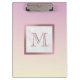 Esta prancheta moderna apresenta um monograma rosa dourado em fundo branco de mármore e cor-de-rosa.