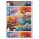 "Experimente a beleza em constante mudança das quatro estações em perfeita harmonia. Este design maravilhoso combina contornos vibrantes de paisagens sazonais, definidas em um fundo macio e calmo, convidando você a abraçar o encanto único de cada época do ano." "A Imagem Original foi gerada pelo Meta AI. A IA gerou trabalho de arte. Licenciado sob CC BY-SA 4.0.