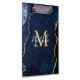 Esta área de transferência apresenta um fundo de mármore agado elegante e glamouroso com detalhes geode gemstone e sotaques dourados falsos. O monograma combina o guião manuscrito e as fontes sans serif modernas para um aspecto elegante e sofisticado. Isso fará o presente ideal, pois ele pode ser personalizado com um nome e uma inicial. As matizes azuis fazem-no perfeito para o outono e o inverno.