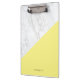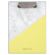 Mármore Branco Moderno com Área de Transferência Personalizada de Bloco Amarelo | Uma prancheta moderna com mármore branco com sotaque de bloco amarelo pastel. Personalize esta área de transferência adicionando seus próprios detalhes. Outras cores estão disponíveis.