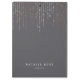 A área de transferência de cinza Chic apresenta duas linhas de texto personalizado em letras brancas clássicas, em um plano de fundo de cinza médio rico com linhas verticais de linhas de fileira falsa rosa dourada e luzes em cascata a partir do topo.