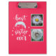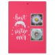 Ilustração cômoda e giratória com cabelo, pestanas, estrelas pequenas e dois modelos fotográficos. Clique em personalizar para alterar as fotos para a da sua irmã (fotos quadradas funcionam melhor) ou comprar-as como estão.