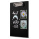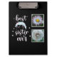 Ilustração cômoda e giratória com cabelo, pestanas, estrelas pequenas e dois modelos fotográficos. Clique em personalizar para alterar as fotos para a da sua irmã (fotos quadradas funcionam melhor) ou comprar-as como estão.