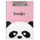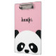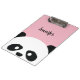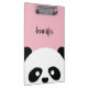 O teste padrão adorável personalizado do rosa do urso de panda caçoa a prancheta. Luz - fundo cor-de-rosa com o urso de panda preto e branco que espreita para fora da parte inferior. Personalize com nome. Personalize à cor ou à pia batismal do fundo da mudança. O verso é teste padrão da cara da panda. www.SamAnnDesigns.com
