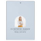 Sleek and minimal baby blue Clipboard design featuring a professional arched photo frame and clean typography. Ideal for realtors, brokers, and real estate professionals to keep notes, client details, and property listings organized. This elegant design adds a personal, branded touch — perfect as office stationery, client gifts, or team branding. Fully customizable with your own photo, name, and business details.