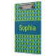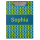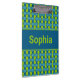 This stylish clipboard adds a retro-inspired flair to your office or home. The bold, geometric link pattern in cool blue and green hues instantly upgrades any desk or workstation, keeping you organized in eye-catching fashion. With a sturdy clip to hold your papers firmly in place, this clipboard makes an ideal companion for meetings, classes, or remote work. Bring a touch of vintage-inspired charm to your everyday productivity. This clipboard is perfect for students, professionals, and anyone who wants to add a splash of personality to their workspace. Elevate your note-taking, to-do lists, and document organization with this modern yet nostalgic design that's sure to inspire.