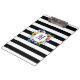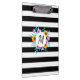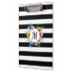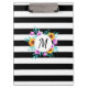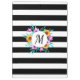 Área de transferência de na moda com camada de aquarela floral em fundo listrado preto e branco. Personalize o monograma escolhendo entre muitas fontes maravilhosas.