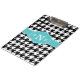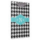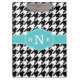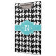 Padrão rostooth preto-e-branco com um modelo de monograma triplo de na moda quatrefoil azul-marinho. Uma ideia moderna e moderna de presente para uma menina de trioridade na moda pré-despedida.