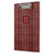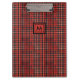 Esta prancheta de na moda tem um padrão tradicional de tartan escocês xadrez que apresenta um impressão geométrico vermelho e preto e um monograma simples e personalizável. É perfeito como presente de Natal!