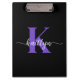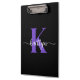 Esta prancheta preta, simples e elegante, 12,5 x 9, com o seu primeiro nome numa letra de texto de tendência em branco e a sua primeira inicial numa fonte moderna de boné em roxo é perfeita para si. É na moda e moda e, no entanto, muito clássico. Será útil em tantas situações. Perfeito para o trabalho, casa, escola.
