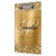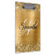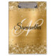 Um monograma personalizado, preto-e-branco, rico contra um brilho falsa dourado e um gráfico digital de folha metálica. Crie a sua prancheta bonito de volta à escola para o seu professor favorito. O design do monograma está na frente e atrás... mas você pode apagar qualquer texto que não precisar. Selecione ambos os elementos de texto para aumentar ou diminuir o tamanho do seu nome ou inicial como um grupo. A opção de diretrizes do sistema pode ser útil para centralizar ou mover um estilo de fonte com muitas lindas espirais e florescer. As folhas de brilho sujo e as folhas de metal escovas são criadas com elementos digitais que cheiram a impressão como uma foto.