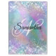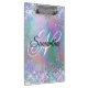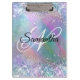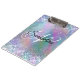 Um monograma personalizado preto-e-branco rico contra uma fina cor iridescente brilhante esfregou um gráfico de folhas metálicas com a coordenação de bordas superiores e inferiores cintilantes e brilhantes. Crie a sua prancheta bonito de volta à escola para o seu professor favorito. O design monograma está na frente e atrás... mas você poderia apagar um deles se preferisse. Personalize o estilo de fonte feminino e friamente com cores diferentes para corresponder à cor colorida da arte digital de fundo ou à cor favorita dela. Selecione ambos os elementos de texto para aumentar ou diminuir o tamanho do seu nome ou inicial como um grupo. A opção de diretrizes do sistema pode ser útil para centralizar ou mover um estilo de fonte com muitas lindas espirais e florescer. Temos monogramas ricos em diferentes combinações de cores e com desenhos gráficos. A folha fina digital brilhante e multicolorido é criada com um gráfico digital e impressões achatados como uma foto. O arco-íris de cores neste design feminino são púrpura pálida, aqua, rosa, coral e amarelo.
