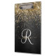 Pranchetas Monograma Dourado de brilho preto com brilho perso