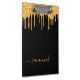 Menina e glamourosa. Um fundo preto chic com brilho sujo de ouro, pingos de tinta pingando. Personalize e adicione um nome. O nome é escrito com um moderno e moderno roteiro de estilo escrito à mão com baloiços. Letras coloridas com ouro. Para manter as hastes, exclua apenas o nome da amostra, deixe os espaços ou emoji na frente e depois do nome.