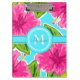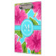 Prancheta personalizada: Monograma com personalização conhecida tradicional da tipografia/roteiro/fundo cor-de-rosa formal do hibiscus