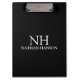 A área de transferência empresarial moderna, com um design preto simples e mínimo, com o seu monograma em letras negrito e o seu nome.