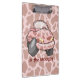 Carro de animação com padrão de vaca rosa. Texto personalizado.