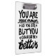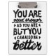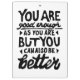 Impressão de lino preto e branco de uma citação motivacional que diz "Você é bom o suficiente, mas você pode sempre ser melhor". Oferece encorajamento às pessoas para saberem que a autoaceitação e o crescimento andam de mãos dadas.
