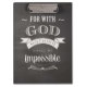 Diversão da tipografia branca e preta com verso conhecido de Luke 1:37: "Com Deus, nada será impossível." Projetado por uma escritura simples por Robin.