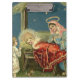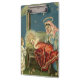 Lovely vintage illustration of baby Jesus born in Bethlehem, surrounded by his mother Mary and two little angel praying.