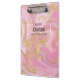 Chic, glam e elegante líquido cor-de-rosa e bolor dourado com um quadro parcialmente branco para o seu nome e texto.