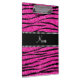 Padrão moderno de zebra rosada a quente, cor-de-rosa-claro (impressão animal) (não brilho real) com uma faixa de fita de ouros pretos (não diamantes reais) personalizada com seu nome, presentes ou presentes de monograma ou suas iniciais ou você pode adicionar seu próprio texto pessoal. Ideias de presente de zebra brilhante para raparigas, adolescentes e mulheres.