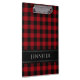 Área de transferência do Office com um impressão de nome personalizado em um padrão clássico de xadrez de gingham verificado, vermelho e preto, na frente e no verso. Material de papelaria correspondente disponível. Veja a coleção de cheios abaixo e veja o Dots & Stripes Pattern Design Studio para mais artigos de escritório e material escolar personalizados.