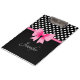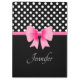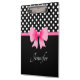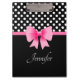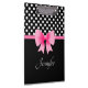 Área de transferência com um elegante padrão de bolinhas preto e branco e arco e design de fita cor-de-rosa nos lados frontal e traseiro. Para personalizá-lo, digite seu nome no campo modelo. Acessórios correspondentes do papel de carta disponíveis no Pattern Design Studio de Pontos e Stripes.