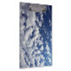 Um banco de nuvens brancas indefinidas se quebra em pequenas peças sábia através do quadro da fotografia vertical. O cobrir da nuvem é mais denso à esquerda e mais esparso à direita, revelando um céu azul profundo que é escuro perto do topo da foto e mais claro perto do fundo. O sol tardio da tarde destaca as bordas direita do cúmulo. Parece que as bolas de algodão rasgadas estão suspensas no ar. Fotografia digital a cores. Copyright © 2010 Claire E. Skinner. Todos os direitos reservados.